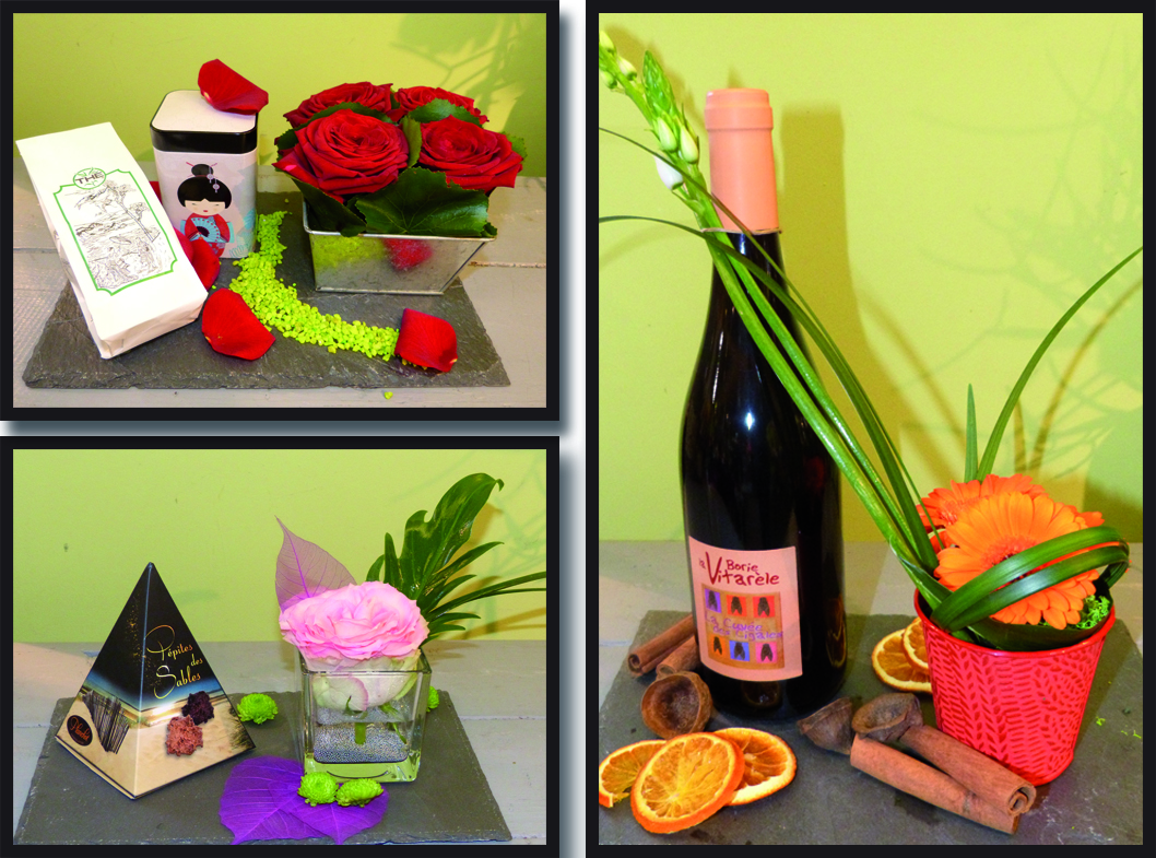 Découvrez également des idées cadeaux originales associant des compositions florales à des produits provenant des partenaires commerçants d'Origine Halle, comme par exemple "Fleurs & Thés ou Cafés", "Fleurs & Chocolats", Fleurs & vins"....