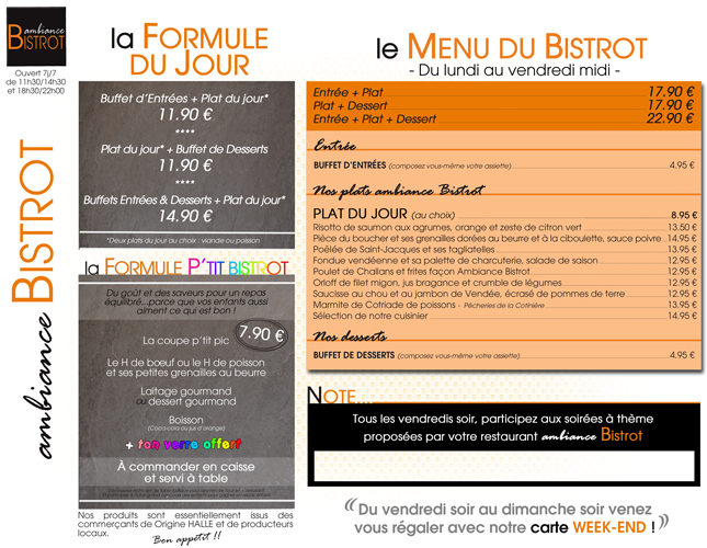 Menu Ambiance Bistrot